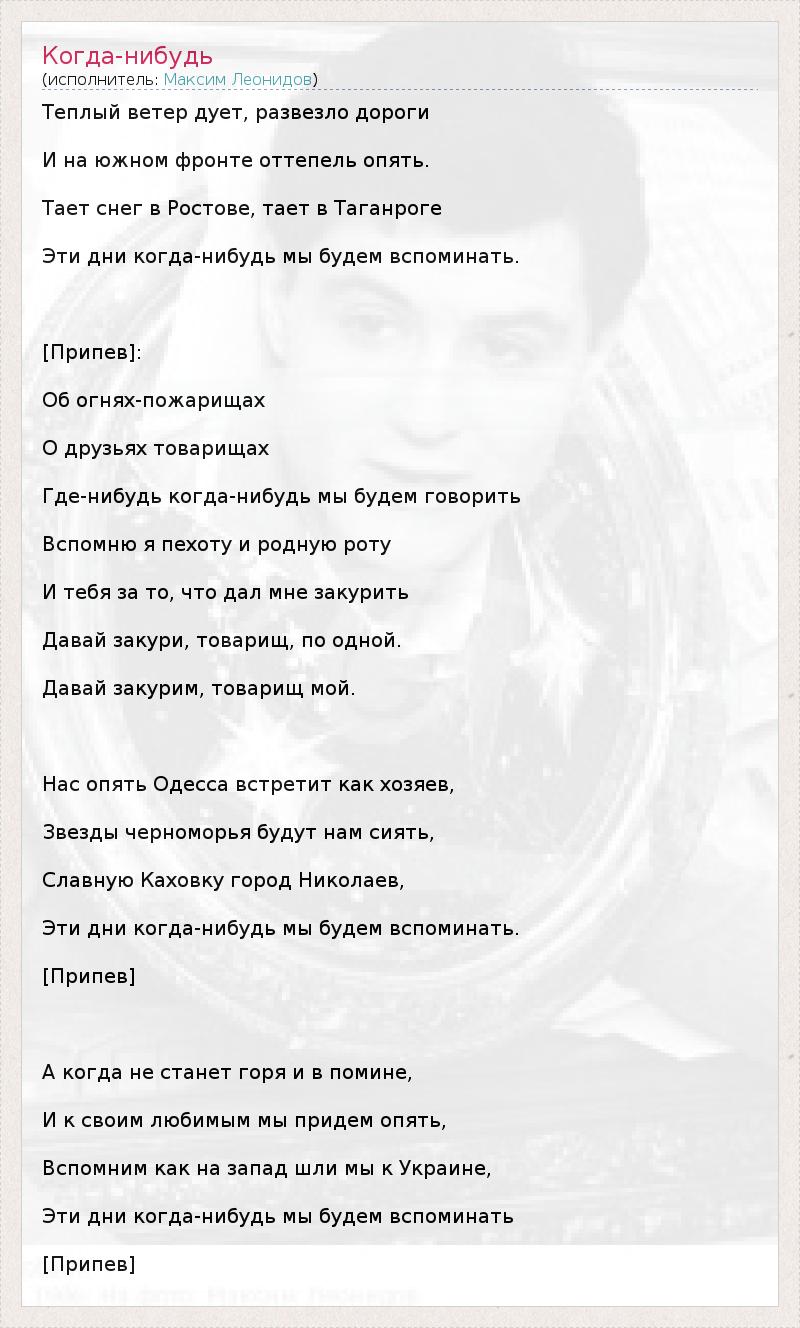 А как ты думаешь, о чем песня "Когда-нибудь" ?