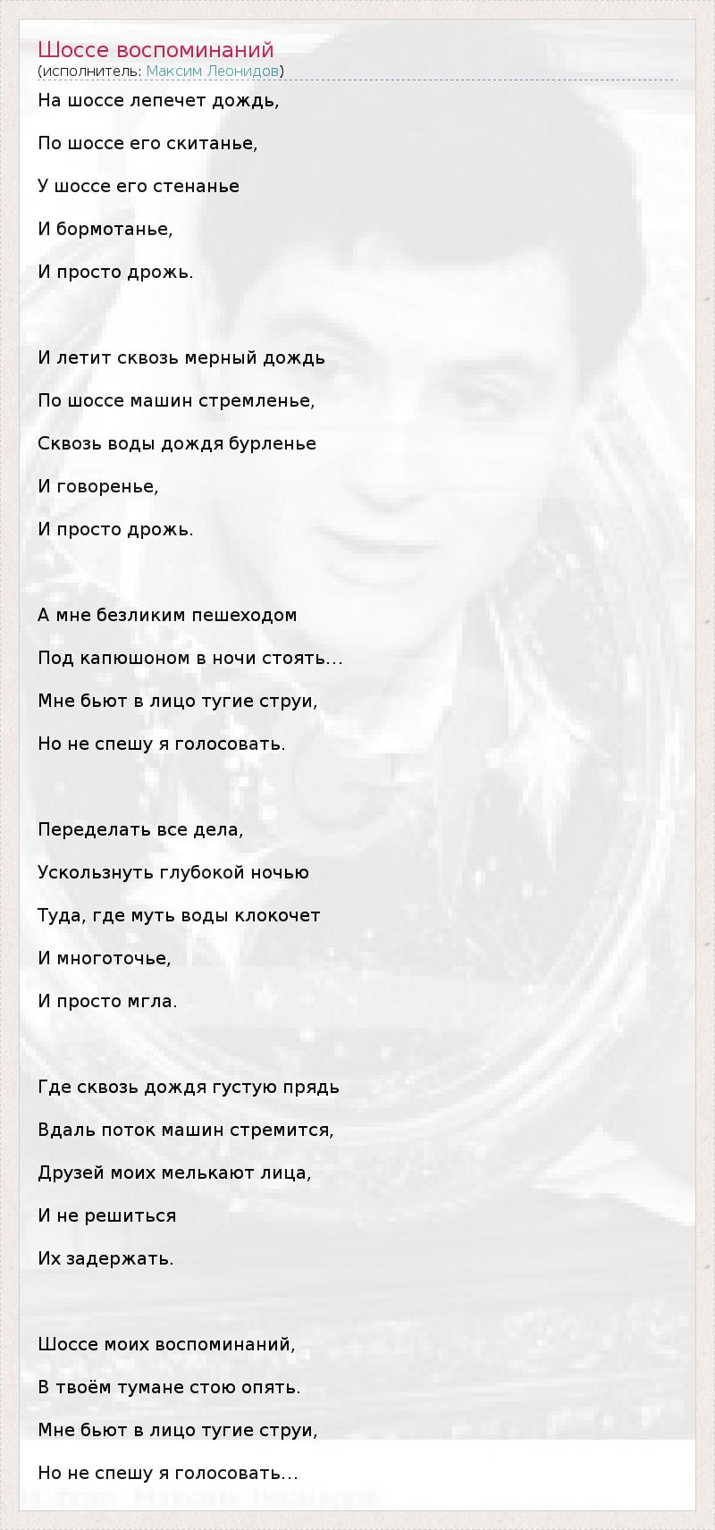 ГлавнаяИсполнителиМаксим ЛеонидовШоссе воспоминаний