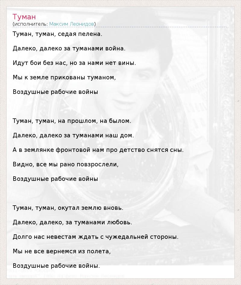А как ты думаешь, о чем песня "Туман" ?