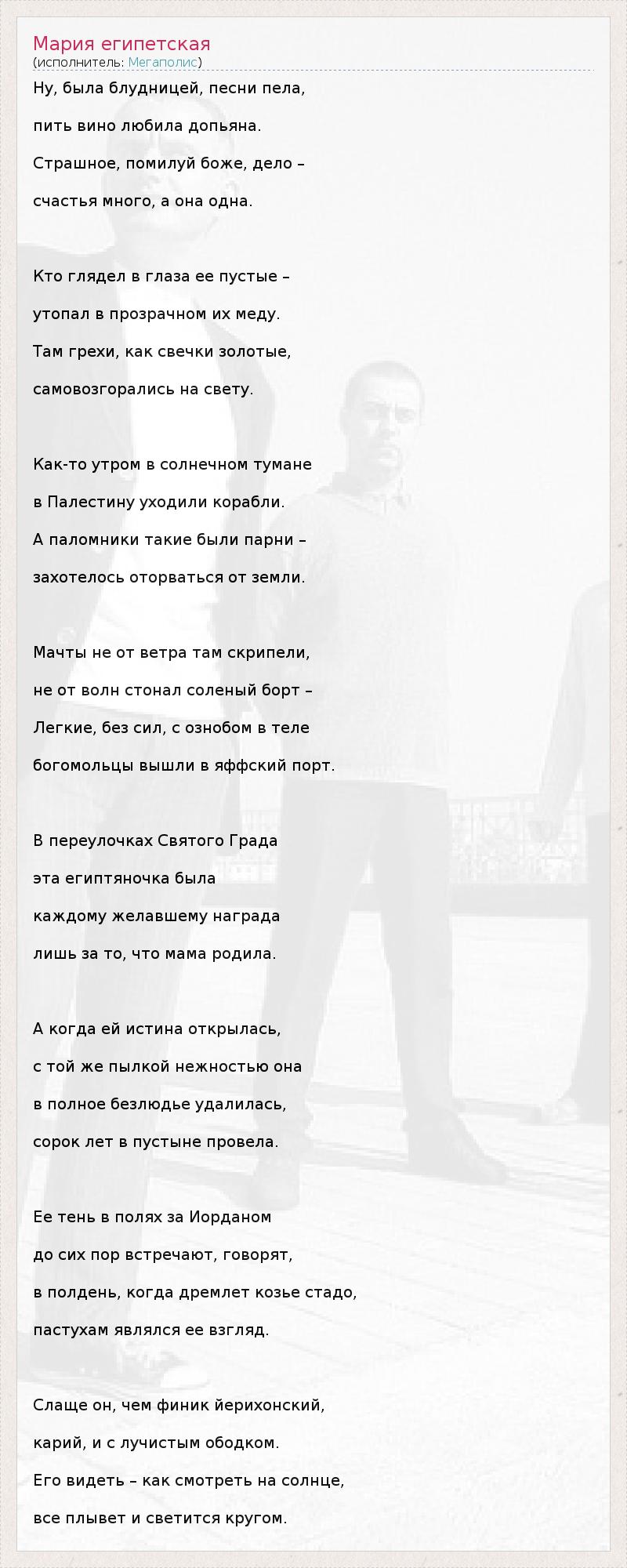 ГлавнаяИсполнителиМегаполисМария египетская