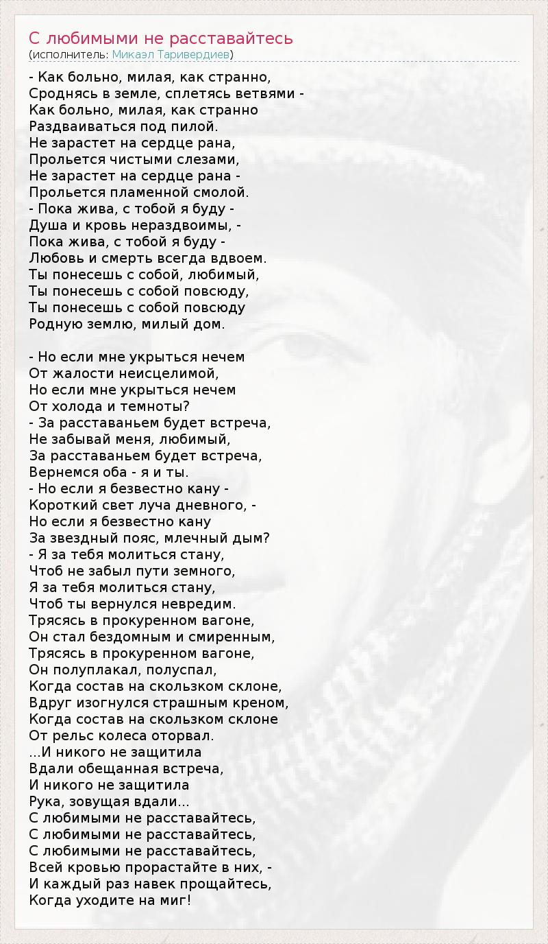 ГлавнаяИсполнителиМикаэл ТаривердиевС любимыми не расставайтесь