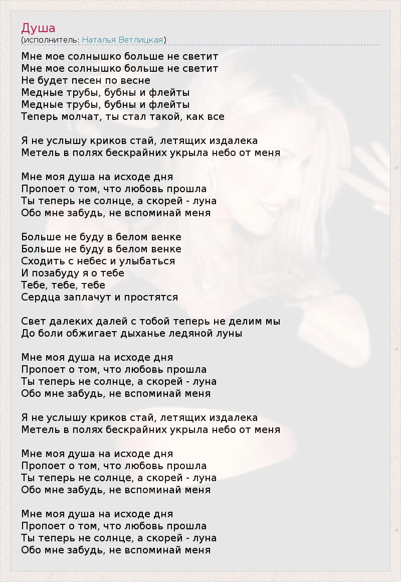 Это интересно:Ната́лья Ветли́цкая (17 августа 1964, Москва) — советская и российская певица. С десяти лет она стала профессионально заниматься бальными танцами, а затем поступила в музыкальную школу по классу фортепиано, которую окончила в 1979 году с золотой медалью.В 17 лет Наталья начала самостоятельно вести школу бальных танцев. В течение десяти лет, начиная с 1974 года, будущая певица... продолжение