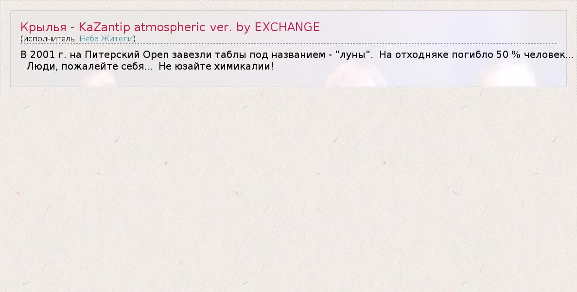ГлавнаяИсполнителиНеба ЖителиКрылья - KaZantip atmospheric ver. by EXCHANGE