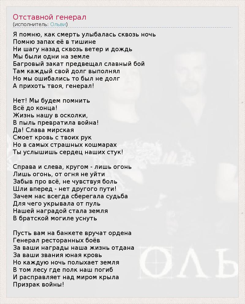 ГлавнаяИсполнителиОльвиОтставной генерал