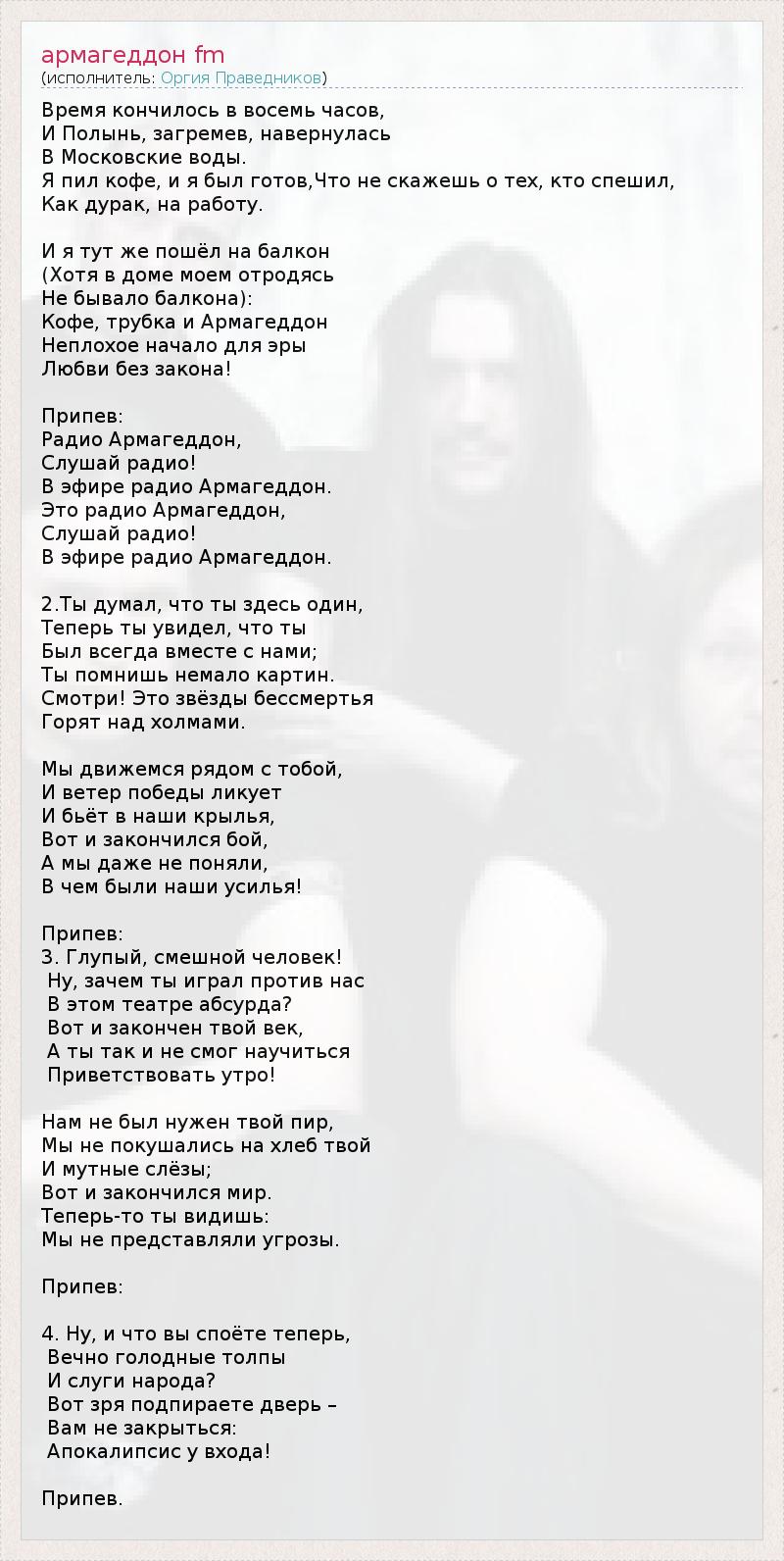А как ты думаешь, о чем песня "армагеддон fm" ?