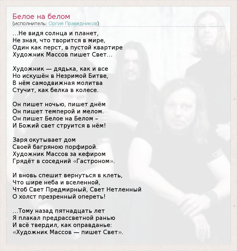 А как ты думаешь, о чем песня "Белое на белом" ?