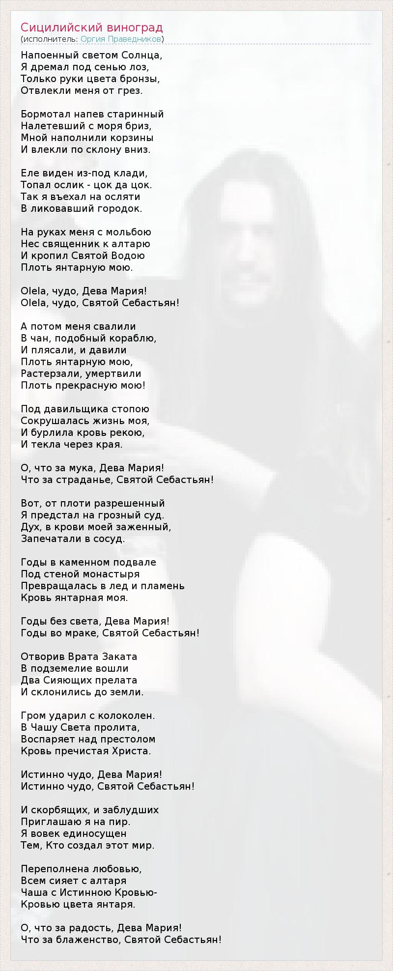 ГлавнаяИсполнителиОргия ПраведниковСицилийский виноград