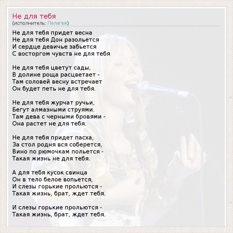А как ты думаешь, о чем песня "Не для тебя" ?
