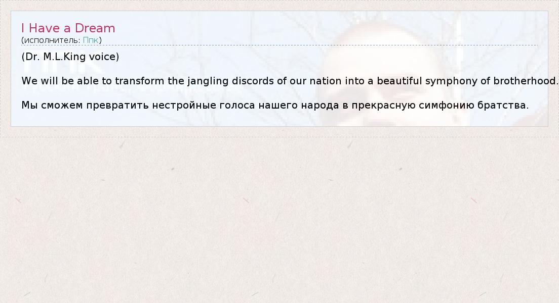А как ты думаешь, о чем песня "I Have a Dream" ?