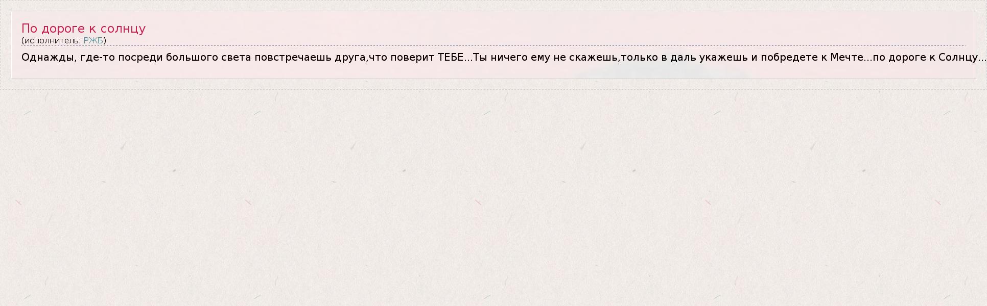 Однажды, где-то посреди большого света повстречаешь друга,что поверит ТЕБЕ...Ты ничего ему не скажешь,только в даль укажешь и побредете к Мечте...по дороге к Солнцу...