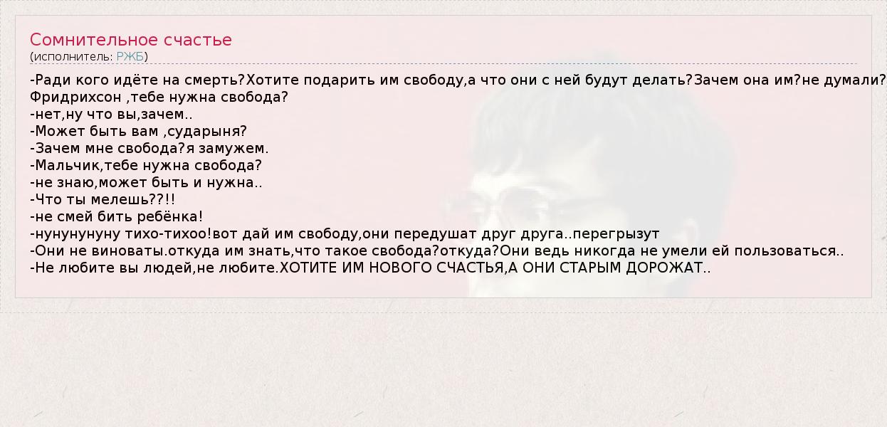 ГлавнаяИсполнителиРЖБСомнительное счастье