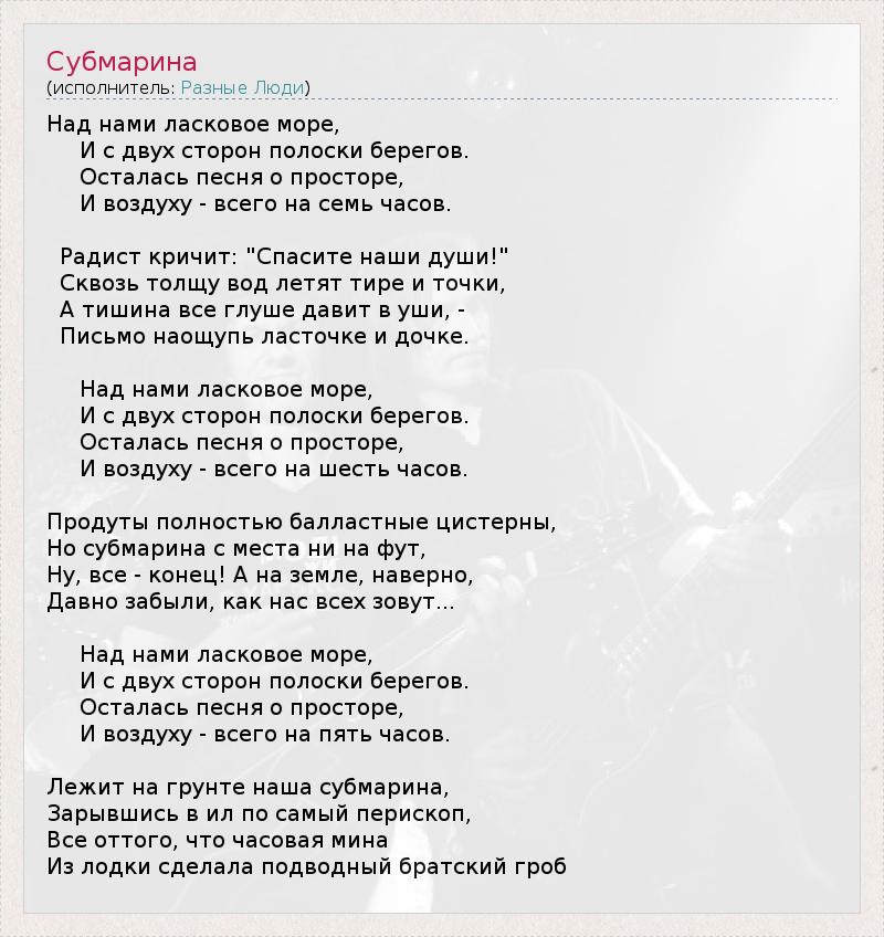 А как ты думаешь, о чем песня "Субмарина" ?