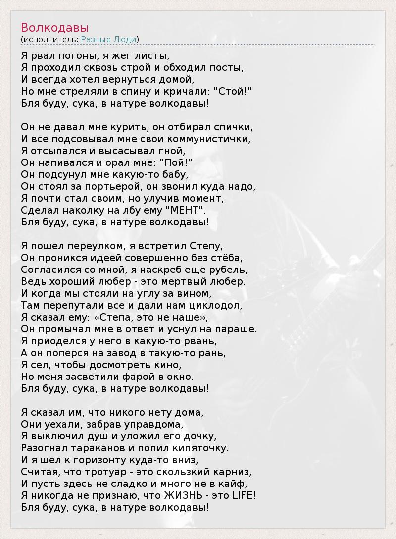 А как ты думаешь, о чем песня "Волкодавы" ?