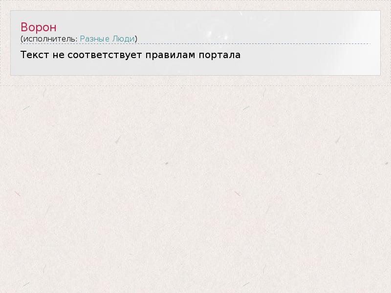 Это интересно:Неправильный тег исполнителя Разные Люди.Если этот исполнитель появляется в ваших чартах, пожалуйста исправьте теги.