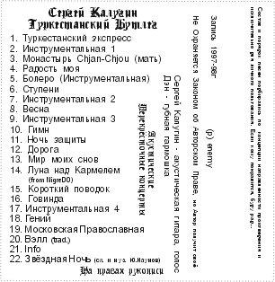 ГлавнаяИсполнителиСергей КалугинТуркестанский Бутлег