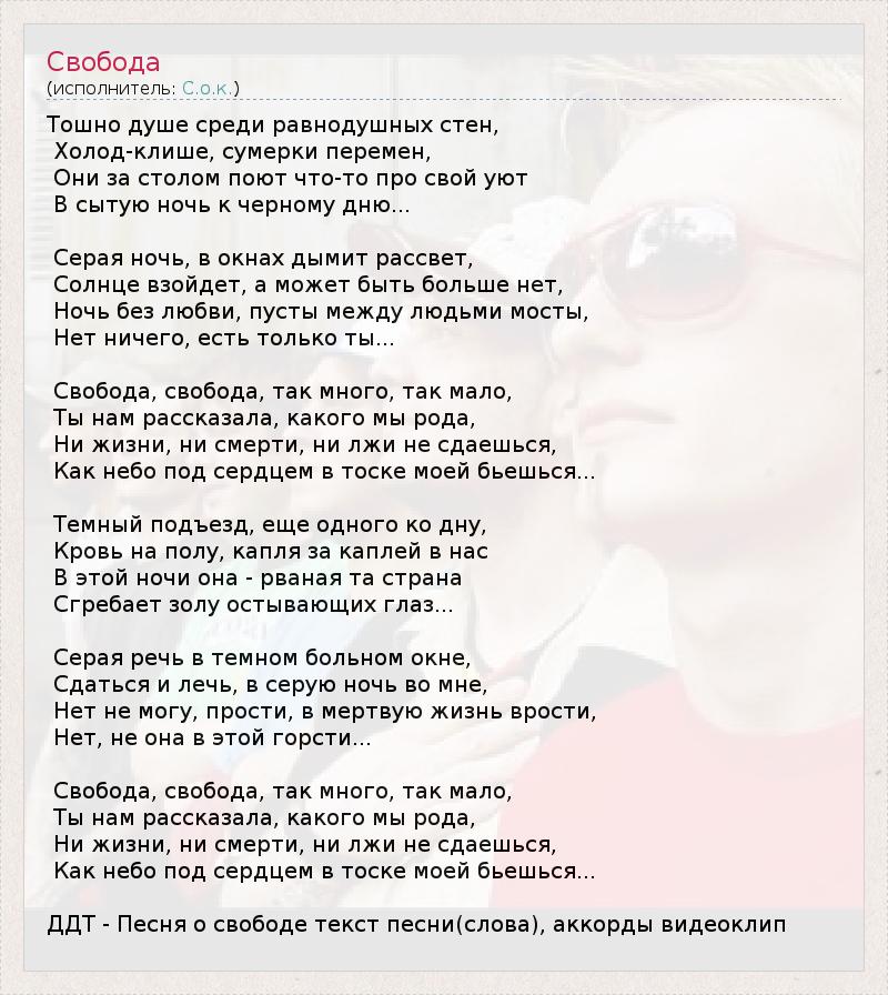 ДДТ - Песня о свободе текст песни(слова), аккорды видеоклип