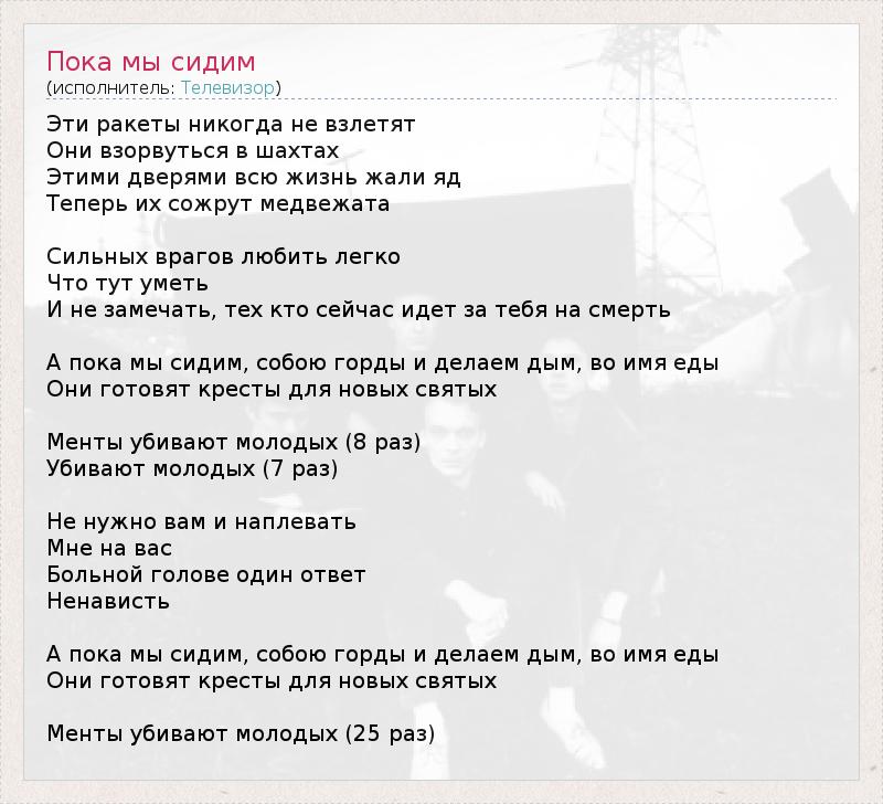 А как ты думаешь, о чем песня "Пока мы сидим" ?