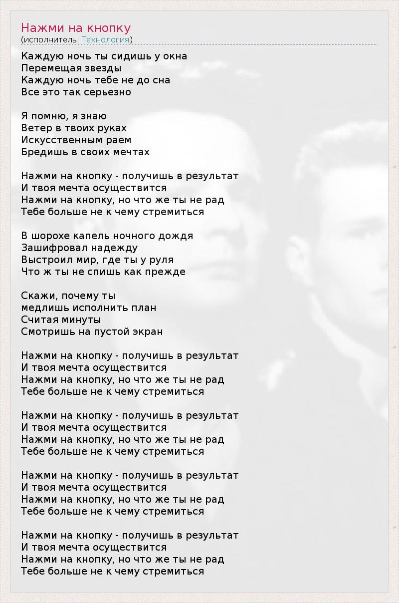 А как ты думаешь, о чем песня "Нажми на кнопку" ?
