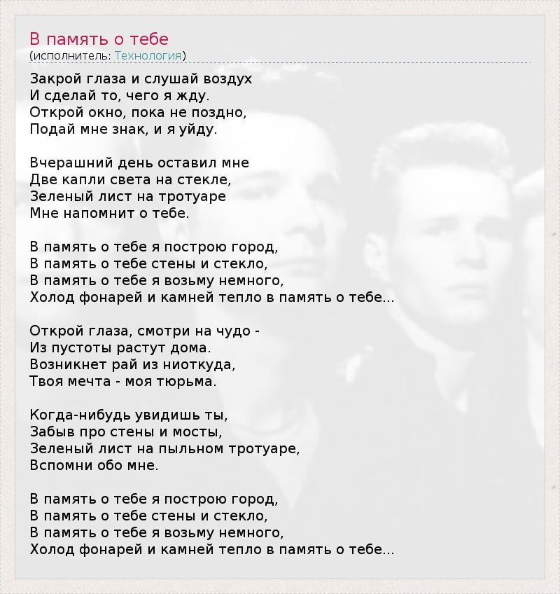 А как ты думаешь, о чем песня "В память о тебе" ?