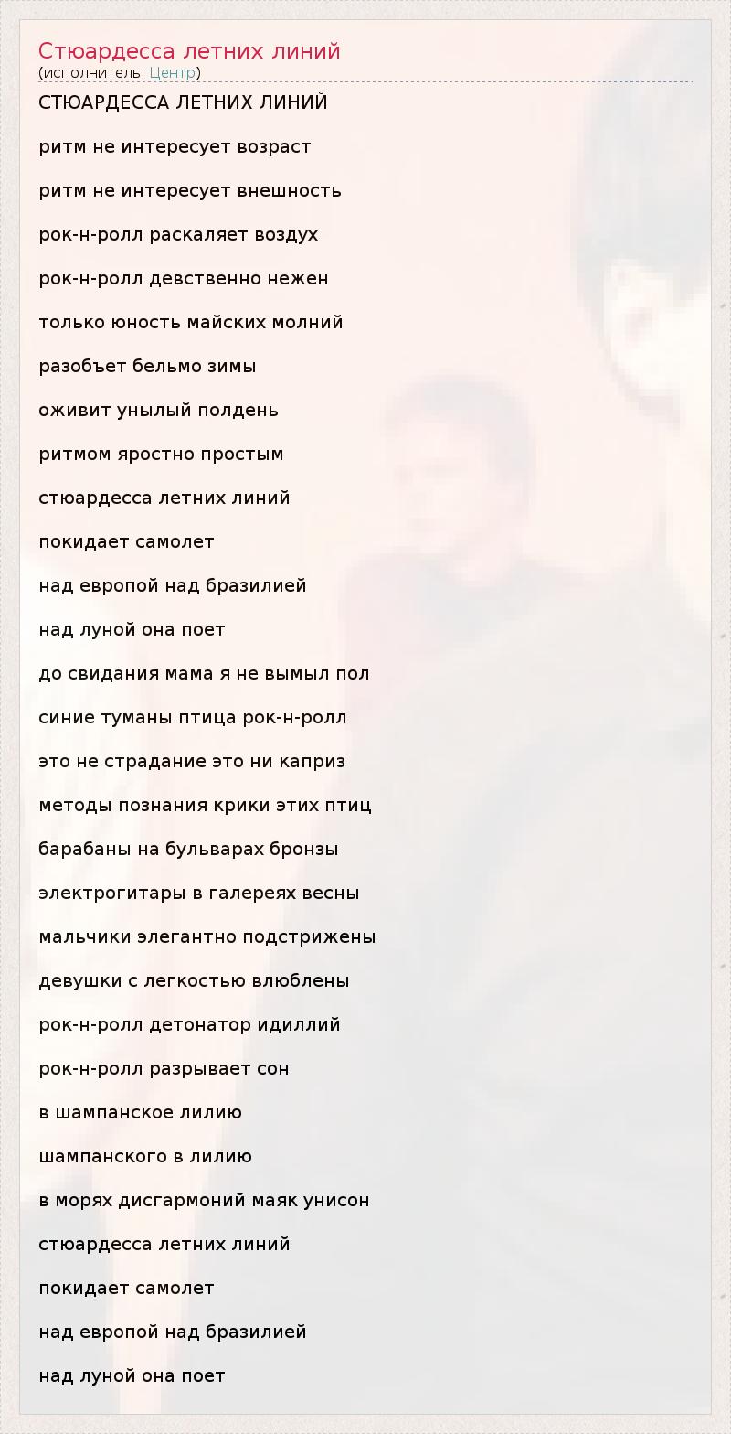 А как ты думаешь, о чем песня "Стюардесса летних линий" ?