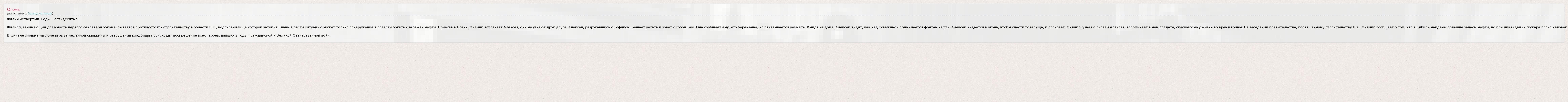 Филипп, занимающий должность первого секретаря обкома, пытается противостоять строительству в области ГЭС, водохранилище которой затопит Елань. Спасти ситуацию может только обнаружение в области богатых залежей нефти. Приехав в Елань, Филипп встречает Алексея, они не узнают друг друга. Алексей, разругавшись с Тофиком, решает уехать и зовёт с собой Таю. Она сообщает ему, что беременна, но отказывается уезжать. Выйдя из дома, Алексей видит, как над скважиной поднимается фонтан нефти. Алексей кидается в огонь, чтобы спасти товарища, и погибает. Филипп, узнав о гибели Алексея, вспоминает в нём солдата, спасшего ему жизнь во время войны. На заседании правительства, посвящённому строительству ГЭС, Филипп сообщает о том, что в Сибири найдены большие запасы нефти, но при ликвидации пожара погиб человек.