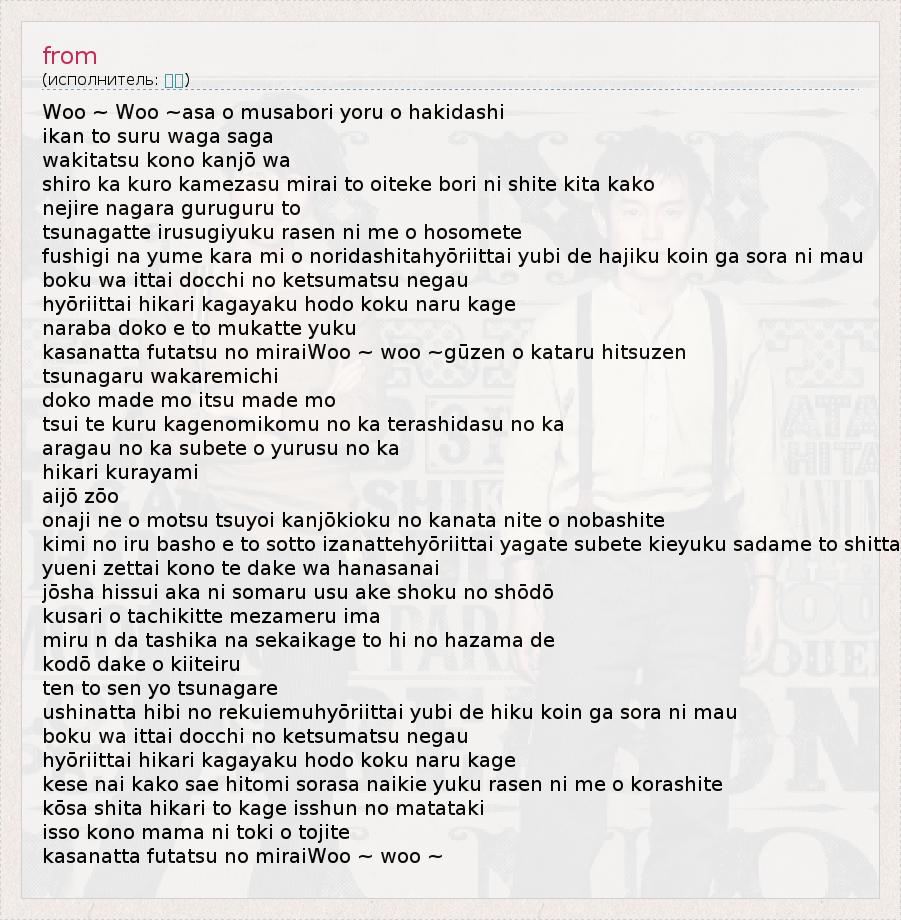 kese nai kako sae hitomi sorasa naikie yuku rasen ni me o korashite