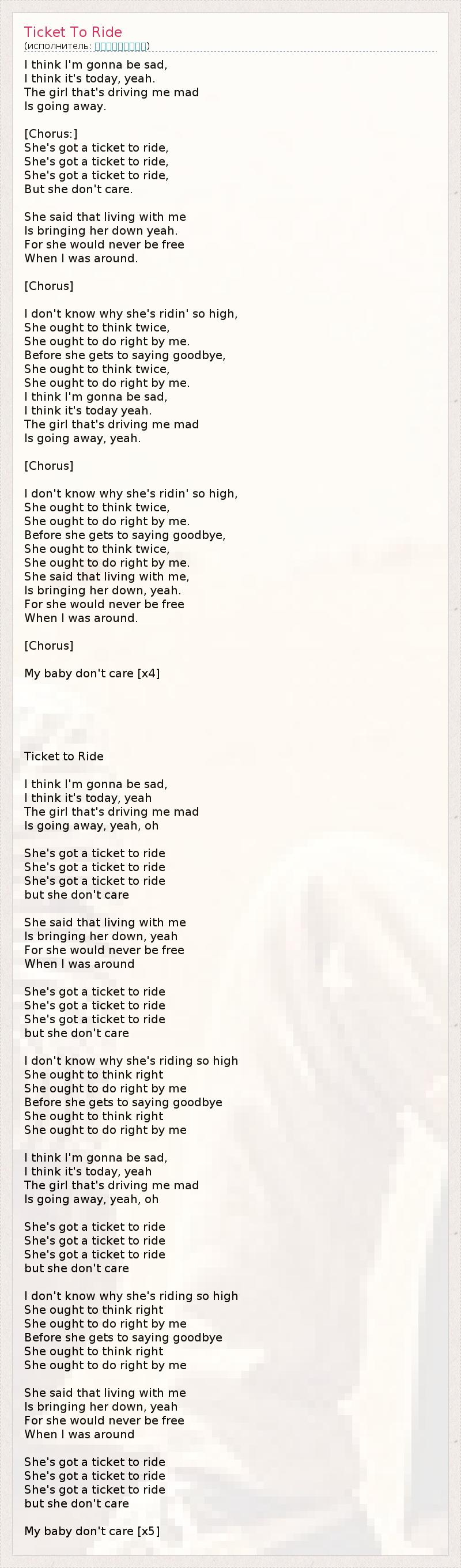 А как ты думаешь, о чем песня "Ticket To Ride" ?