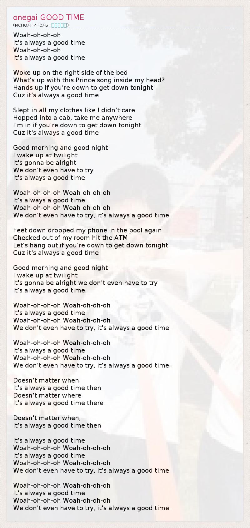А как ты думаешь, о чем песня "onegai GOOD TIME" ?