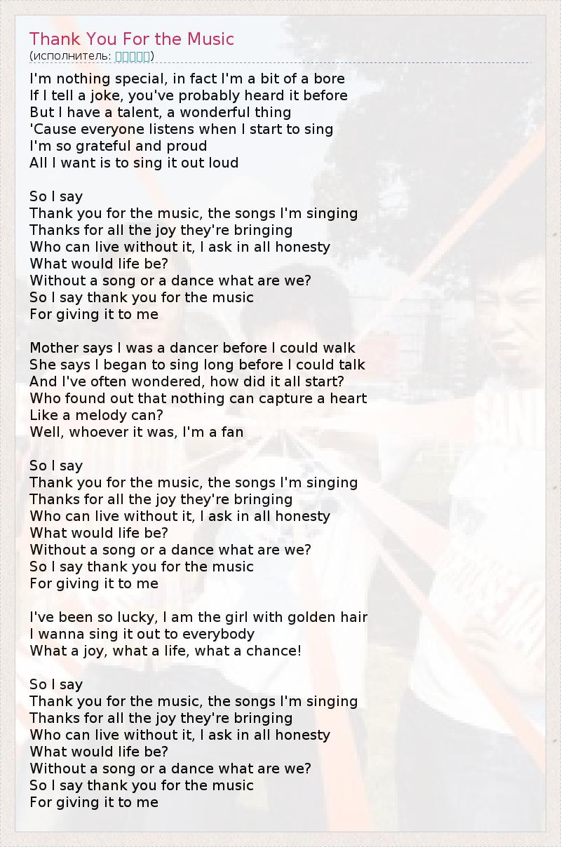 А как ты думаешь, о чем песня "Thank You For the Music" ?
