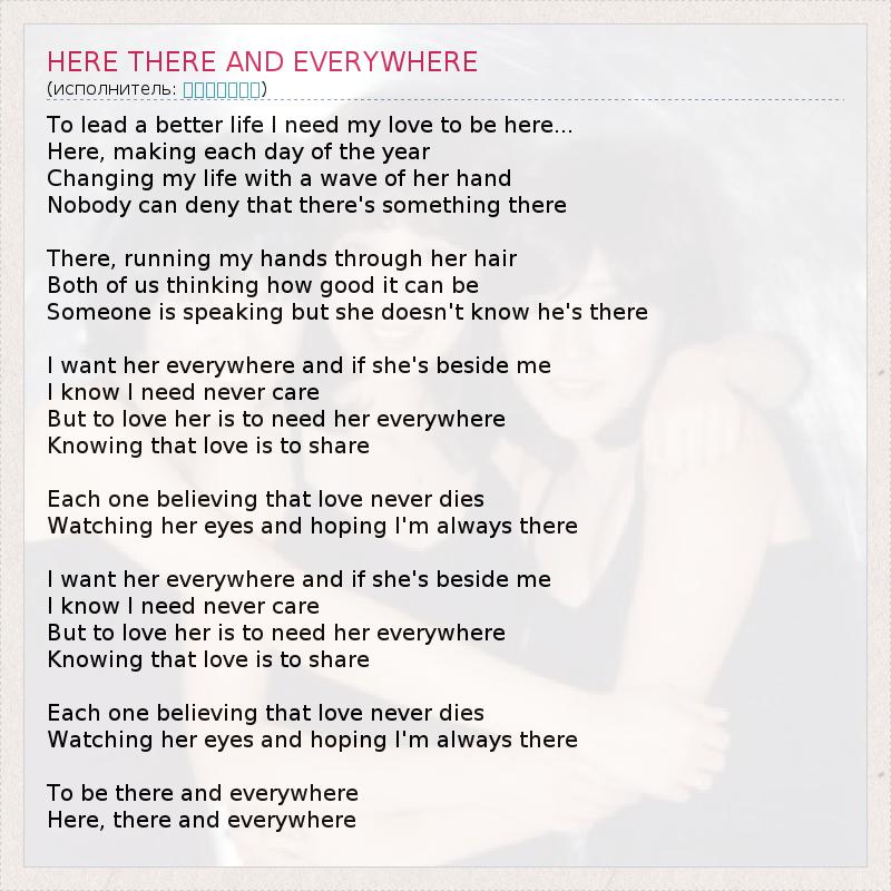 А как ты думаешь, о чем песня "HERE THERE AND EVERYWHERE" ?