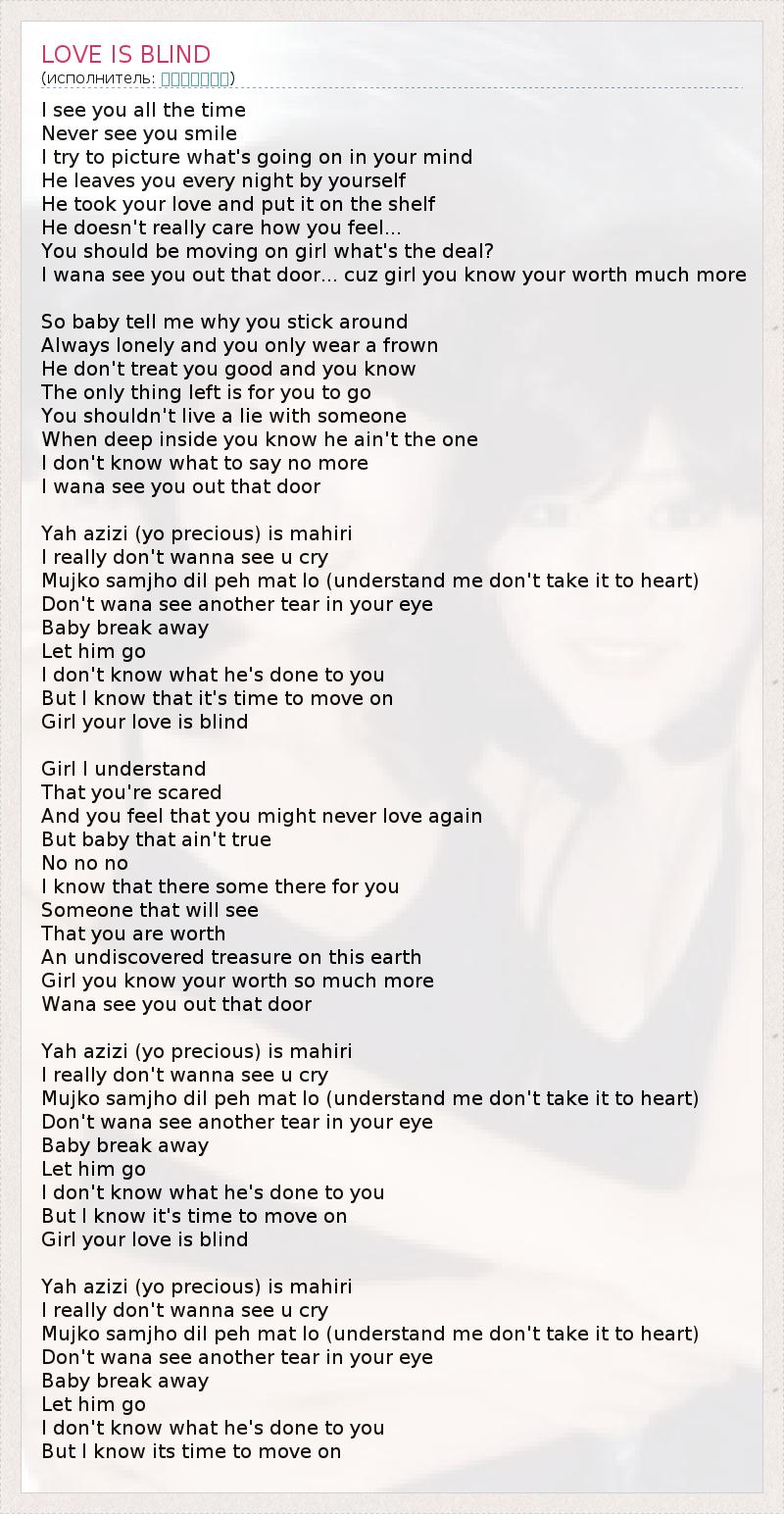 А как ты думаешь, о чем песня "LOVE IS BLIND" ?