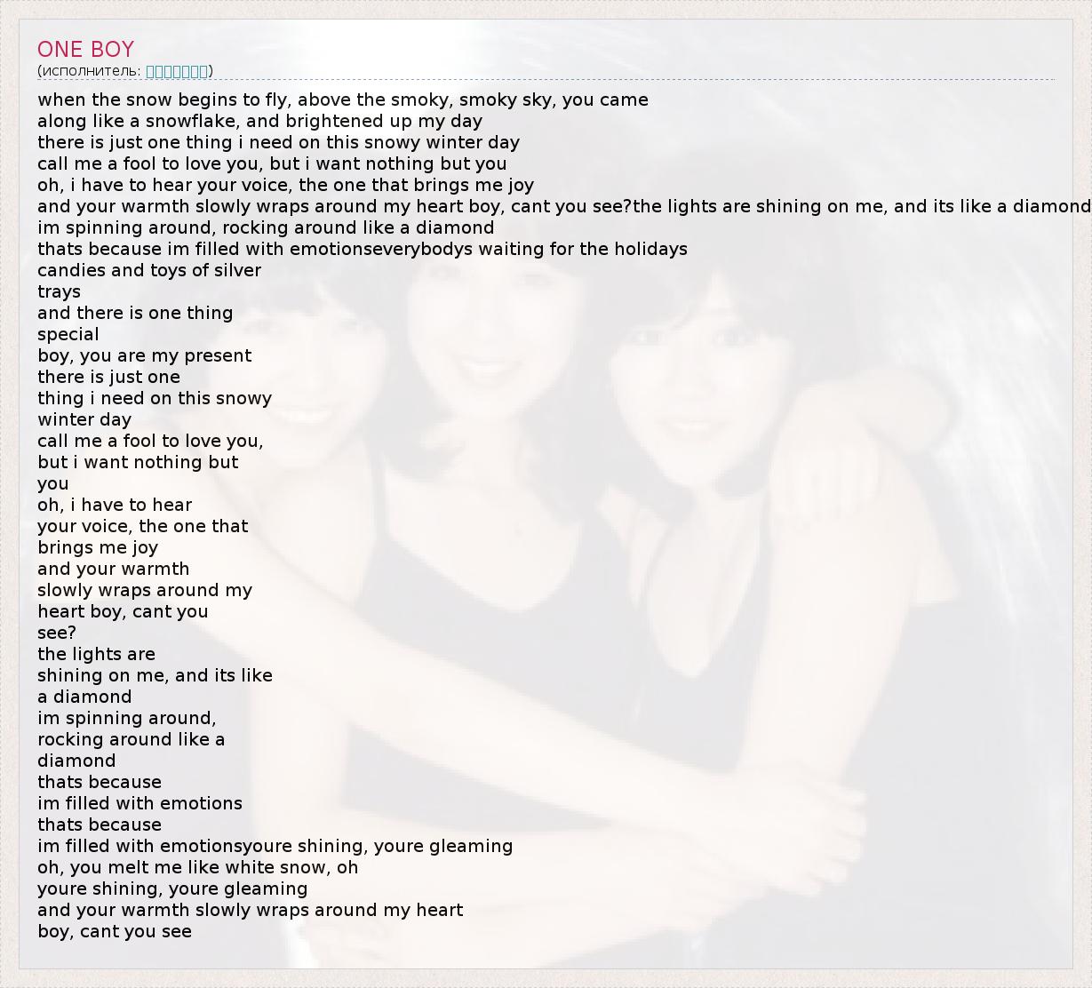 А как ты думаешь, о чем песня "ONE BOY" ?