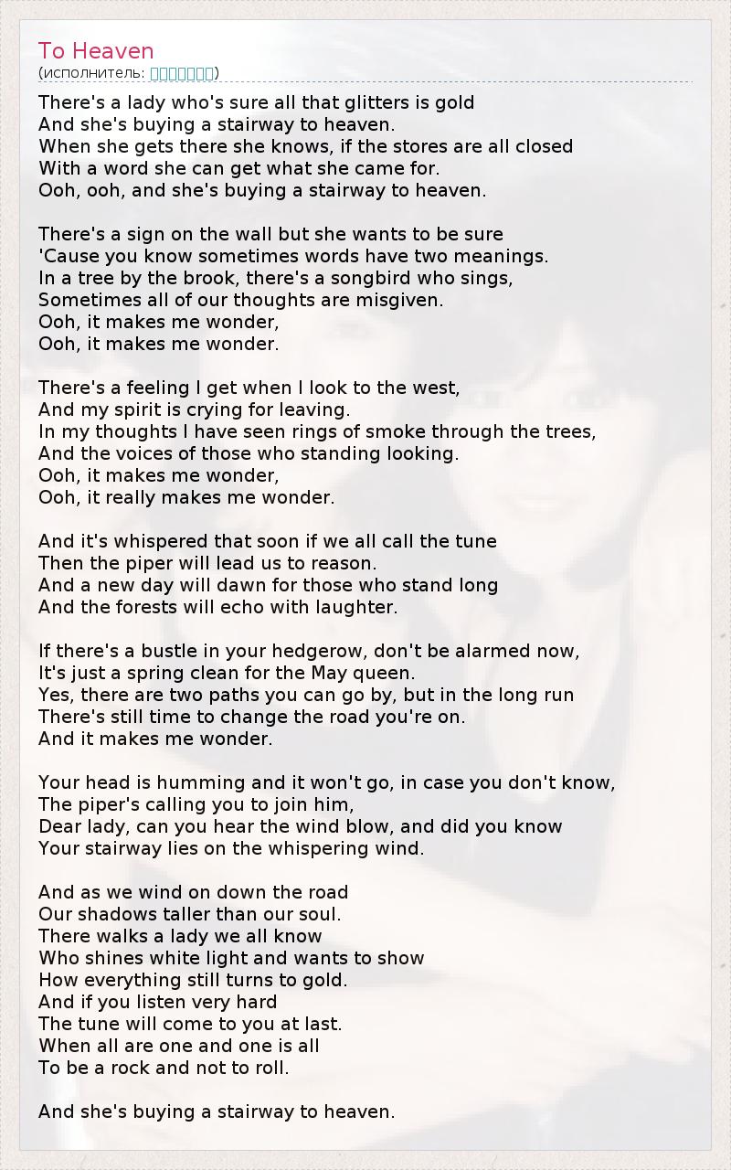 А как ты думаешь, о чем песня "To Heaven" ?