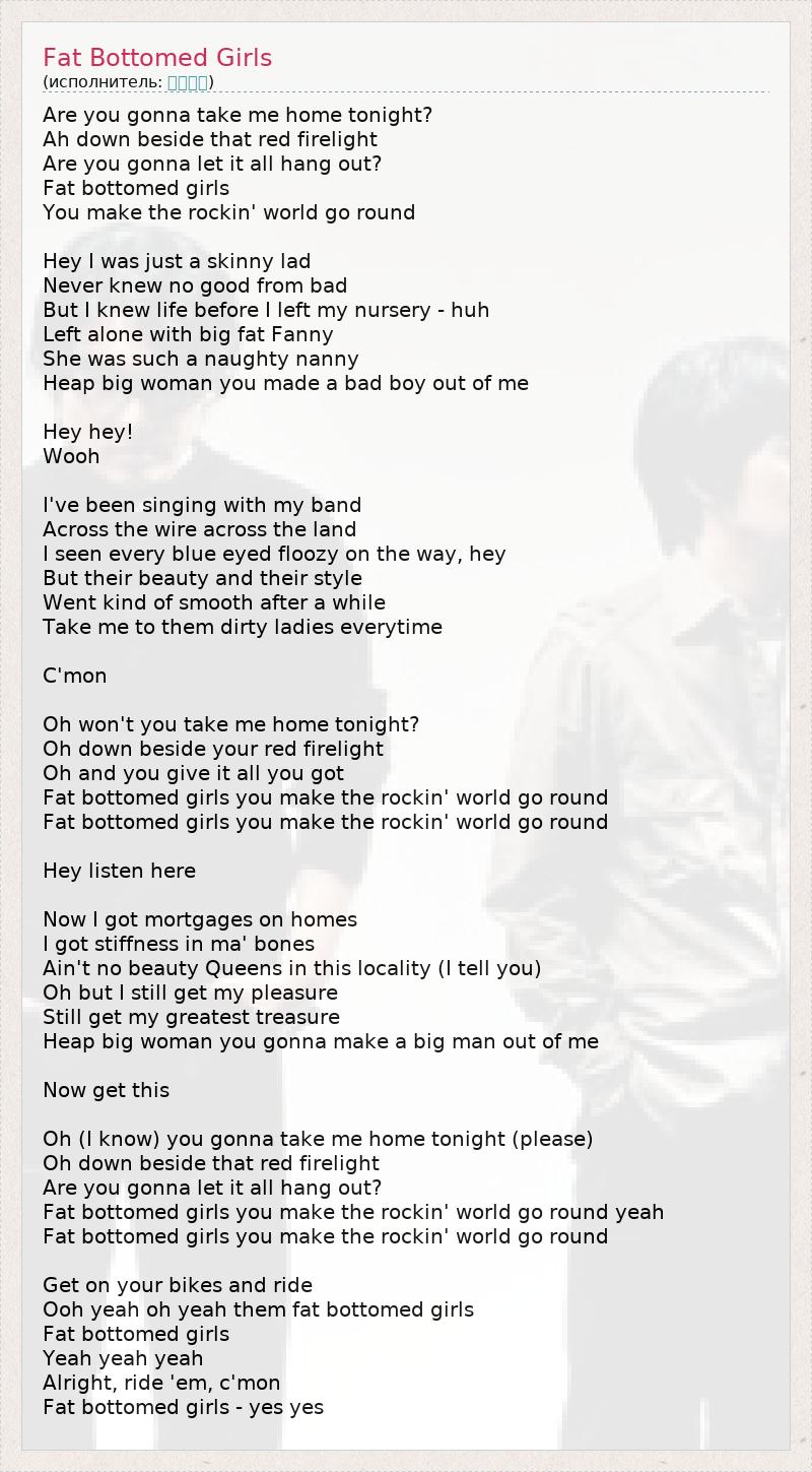А как ты думаешь, о чем песня "Fat Bottomed Girls" ?