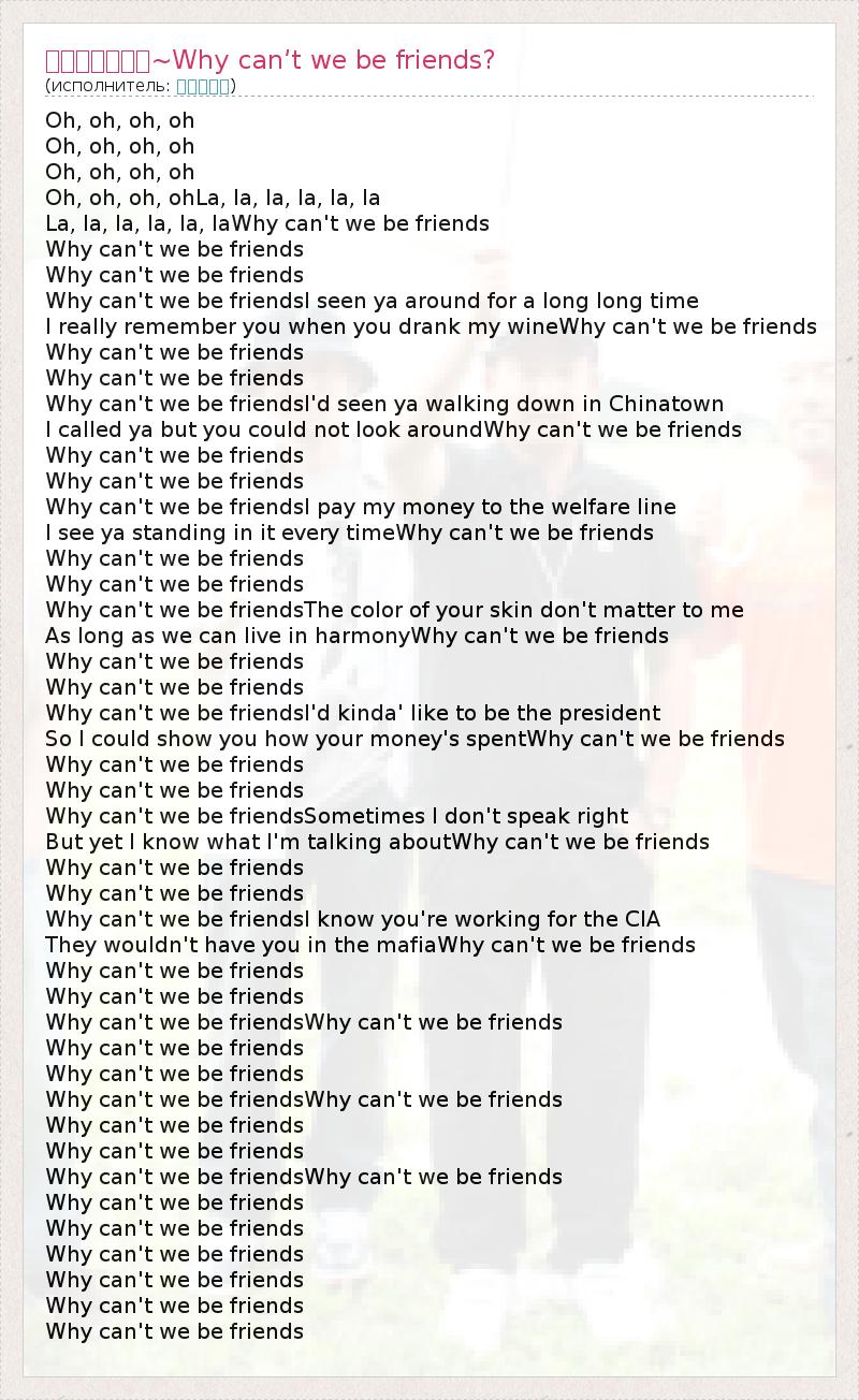 А как ты думаешь, о чем песня "テキトーな奴ら~Why can’t we be friends?" ?