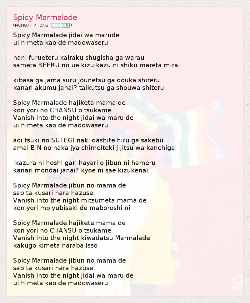 А как ты думаешь, о чем песня "Spicy Marmalade" ?