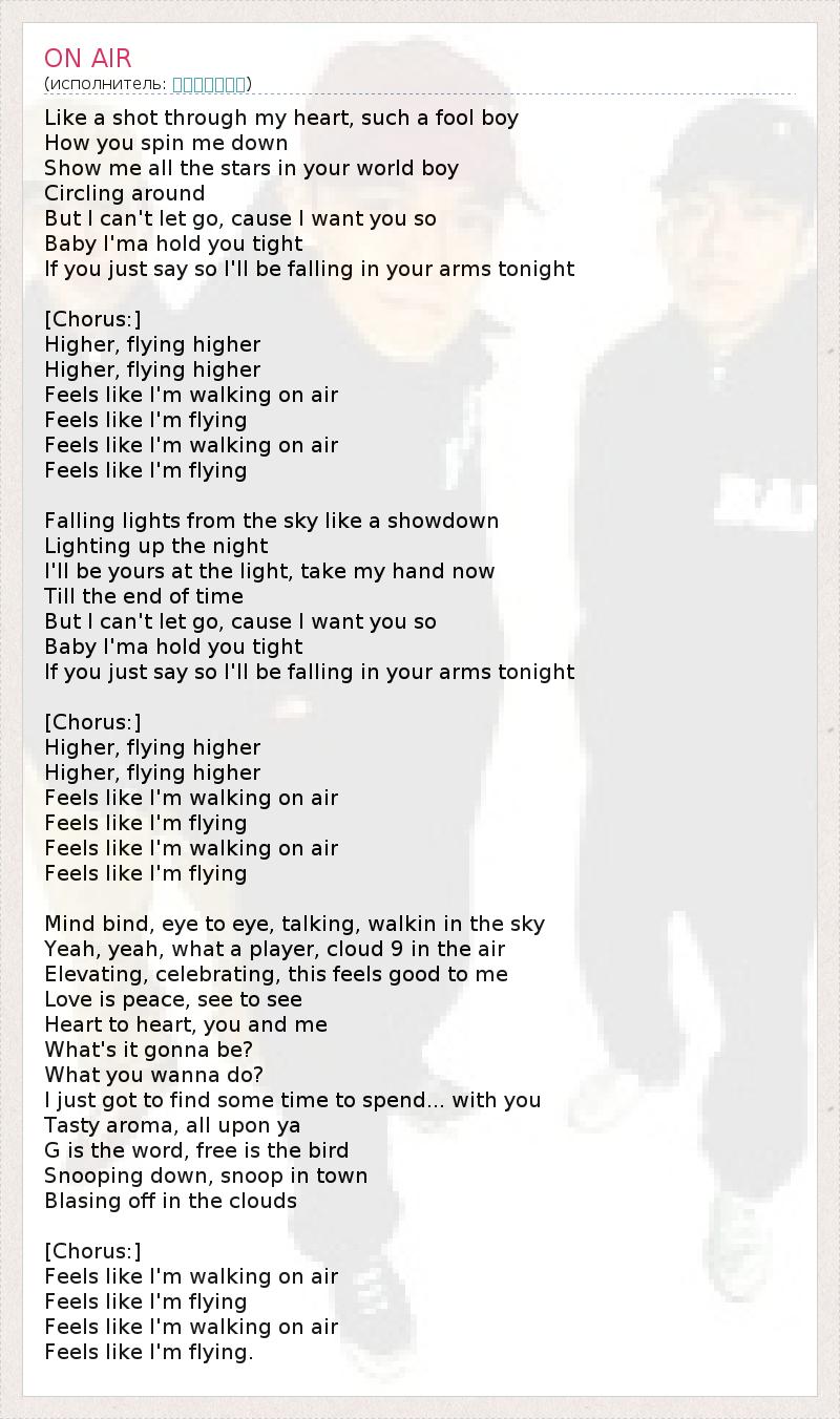 Источник: http://www.amalgama-lab.com/songs/a/anise_k/walking_on_air.html