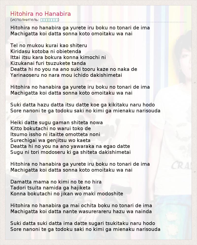 А как ты думаешь, о чем песня "Hitohira no Hanabira" ?