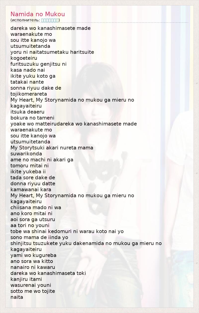 А как ты думаешь, о чем песня "Namida no Mukou" ?