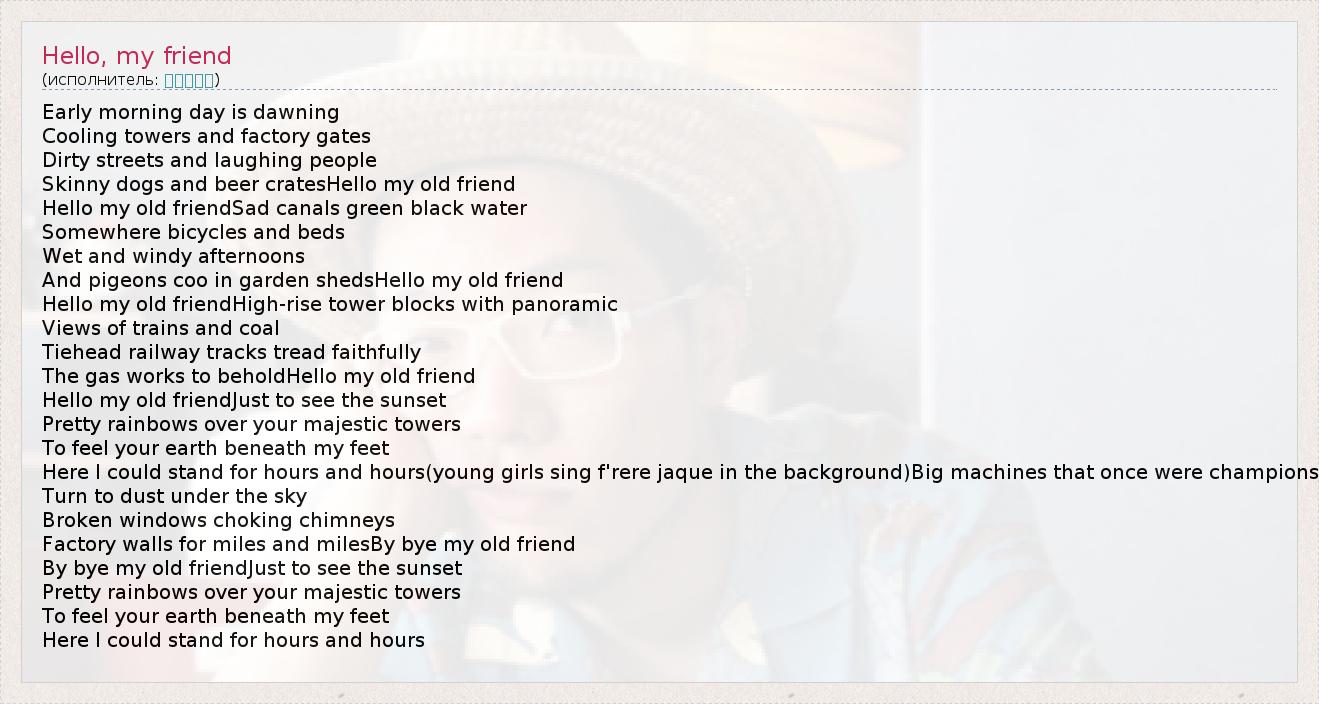 А как ты думаешь, о чем песня "Hello, my friend" ?
