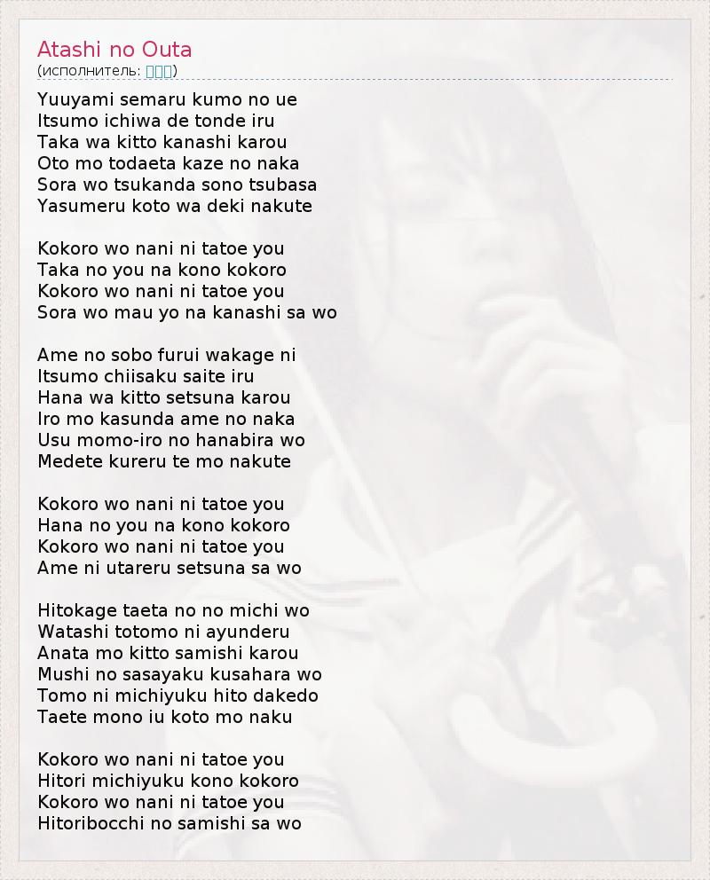 А как ты думаешь, о чем песня "Atashi no Outa" ?