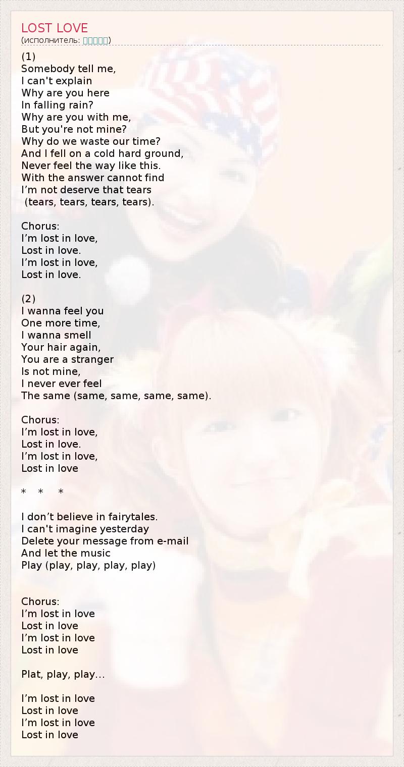 А как ты думаешь, о чем песня "LOST LOVE" ?