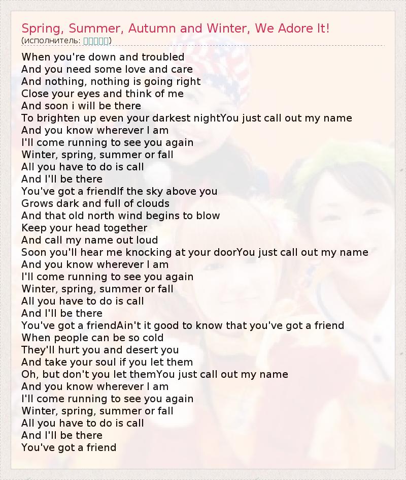 А как ты думаешь, о чем песня "Spring, Summer, Autumn and Winter, We Adore It!" ?