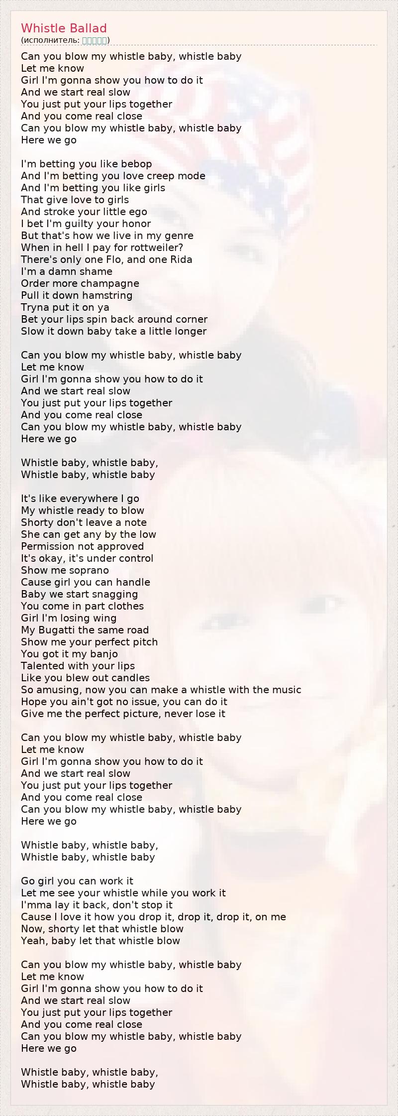 Можешь дунуть в мой свисток, детка, в свисток, детка?