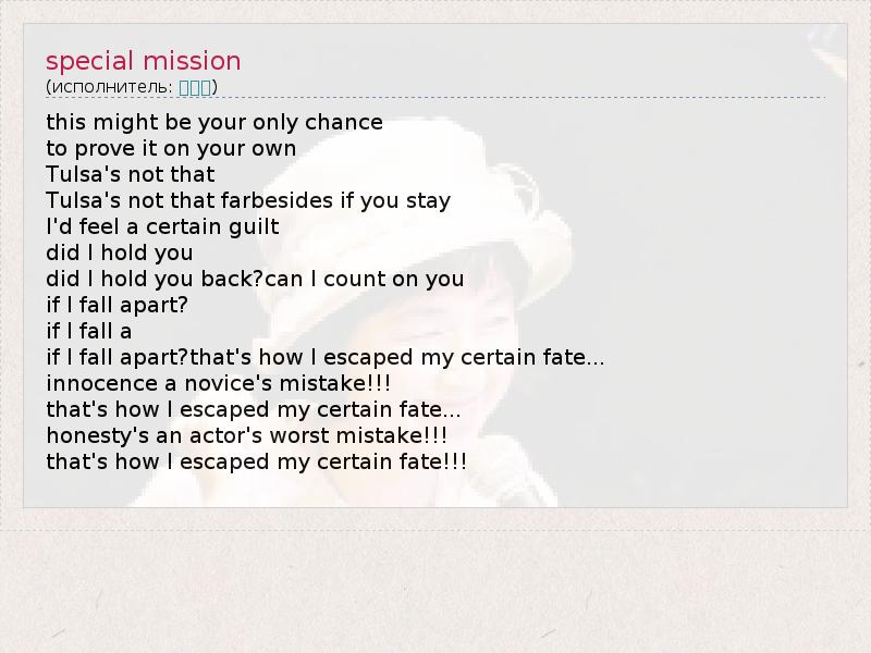 А как ты думаешь, о чем песня "special mission" ?