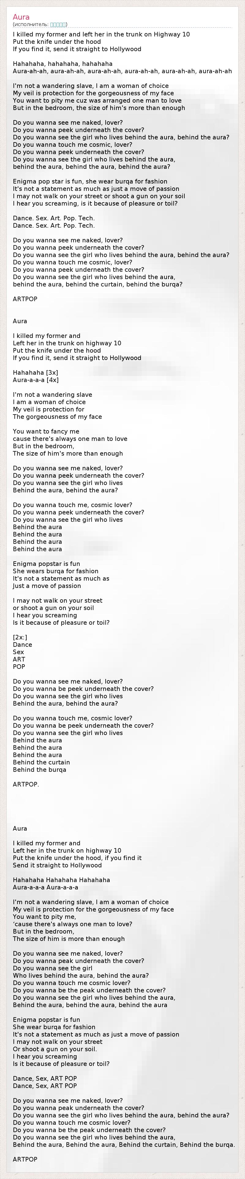 Aura-ah-ah, aura-ah-ah, aura-ah-ah, aura-ah-ah, aura-ah-ah, aura-ah-ah