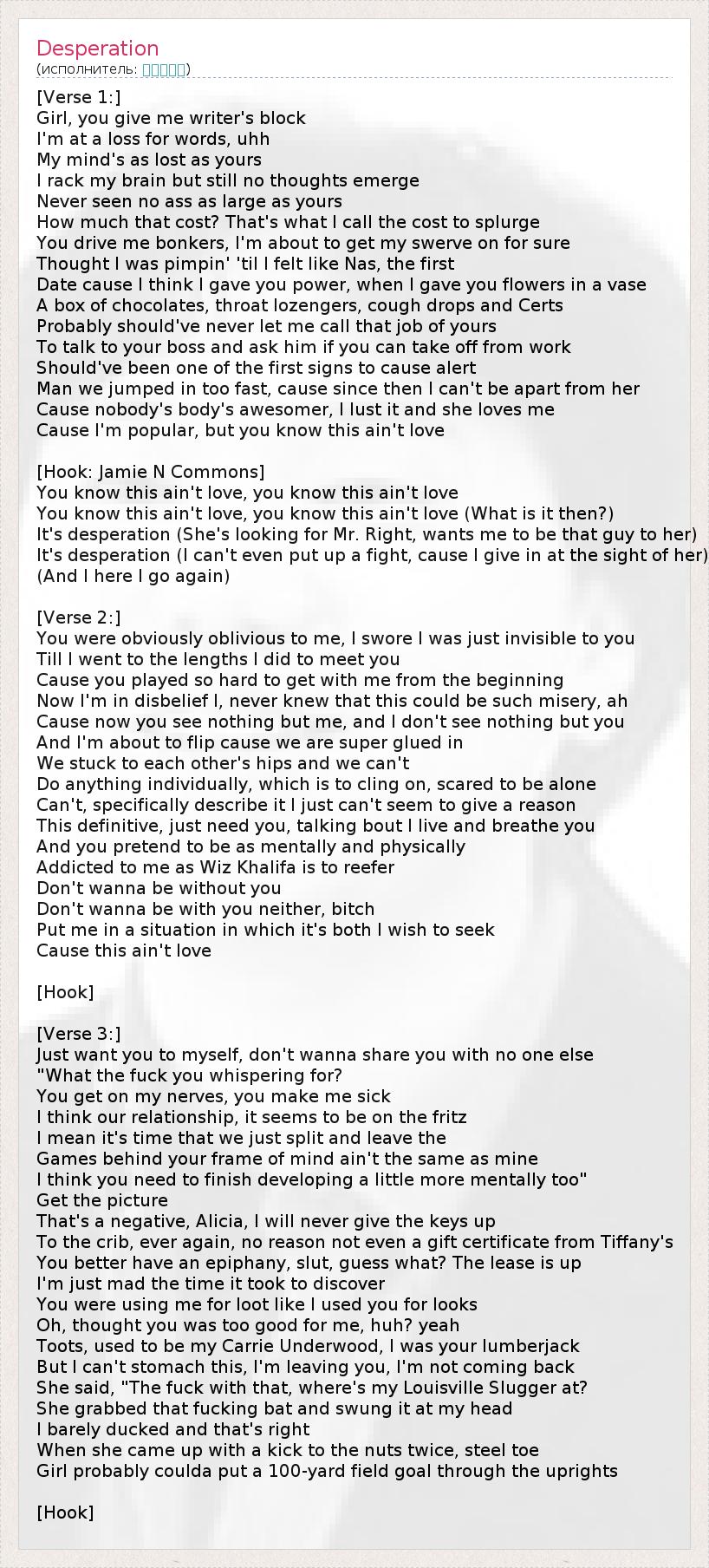 2 – Используется слово "big" (большой, огромный, грандиозный) в качестве эпитета к слову "жопа". Под "большой жопой" автор подчеркивает как сильно ему понравилась фигура девушки, у которой красивые бедра.