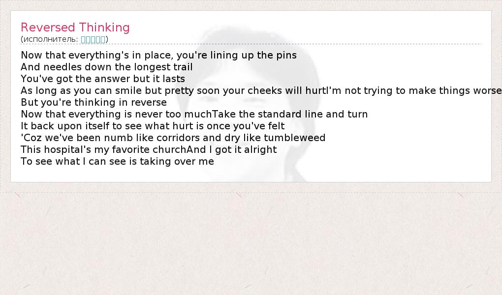 А как ты думаешь, о чем песня "Reversed Thinking" ?