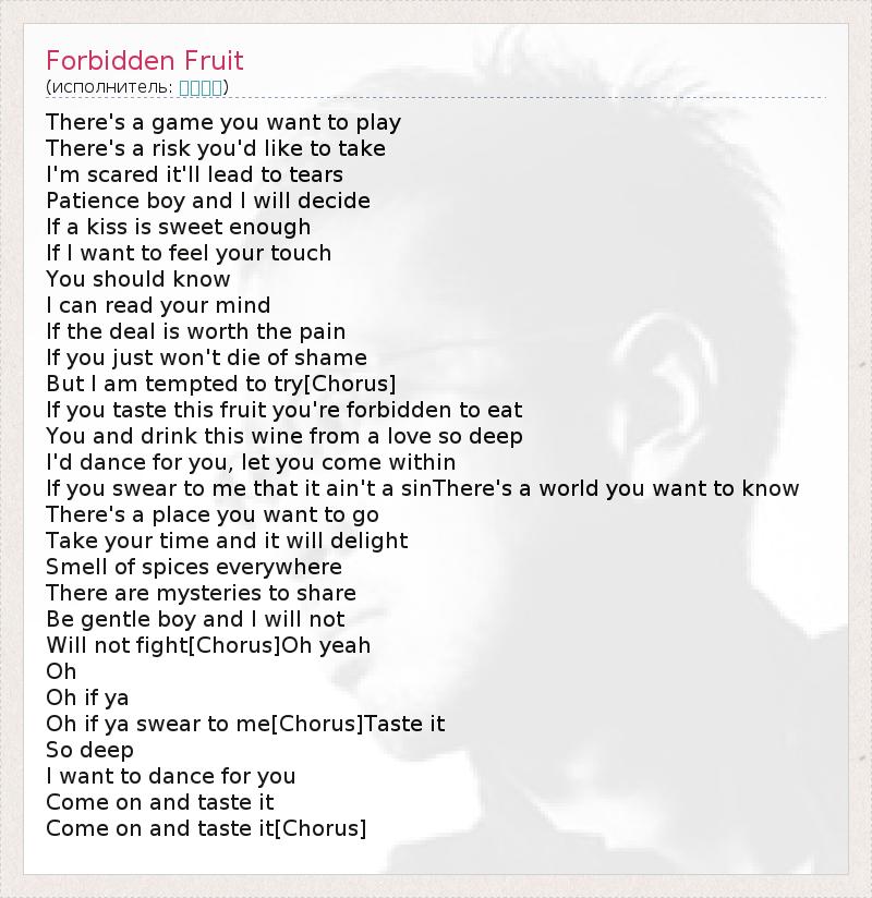А как ты думаешь, о чем песня "Forbidden Fruit" ?