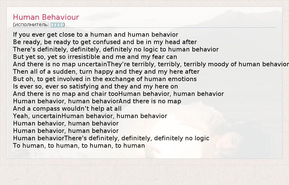 А как ты думаешь, о чем песня "Human Behaviour" ?